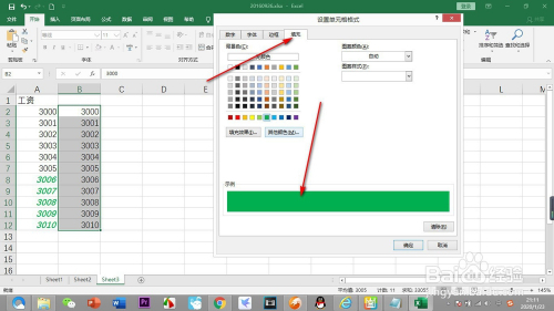 其实预览结果最佳的就是改变布景色,在设置单位格格局中,点击——填充栏,选中颜色,点击确定。