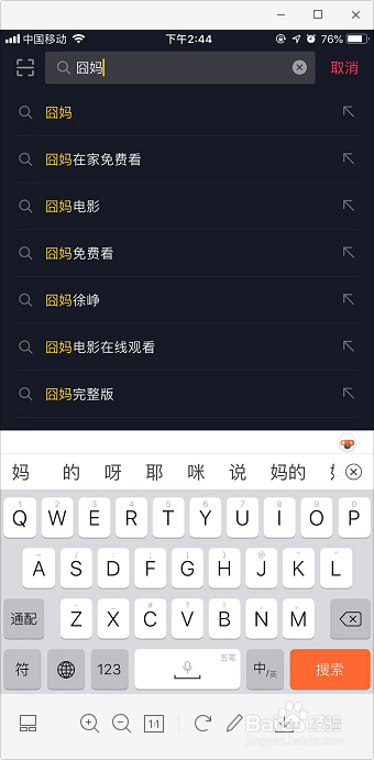 3.搜刮“囧妈”,点击“囧妈在家免费看”。