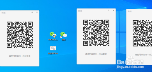 将微信多开的txt文件后辍名改为bat,双击打开bat文件,就会看到我们的微信已经多开了三个,如图所示。