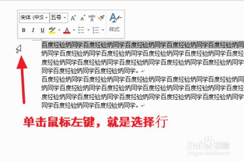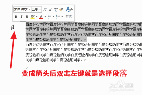 2、快速选择段落:鼠标光标移动到该段落前面,鼠标酿成箭头的时辰,【双击】鼠标左键。