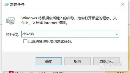 在窗口中输入:chkdsk,回车