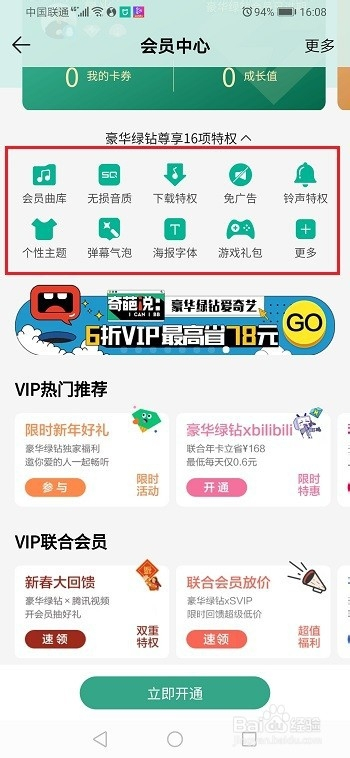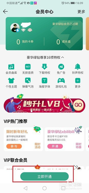 第五步若是想更好的听歌体验的话,可以选择豪华绿钻,进去会员中间,可以选择开通豪华绿钻和音乐包,如下图所示: