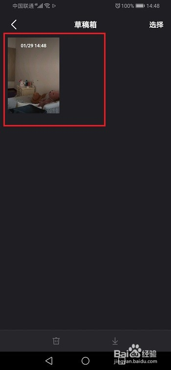 第五步点击选择,可以下载或者删除草稿箱里面的视频,如下图所示: