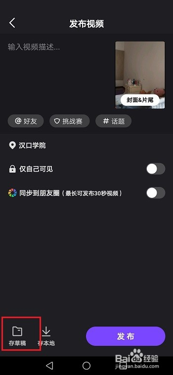 第二步进去视频发布界面,点击存草稿,如下图所示: