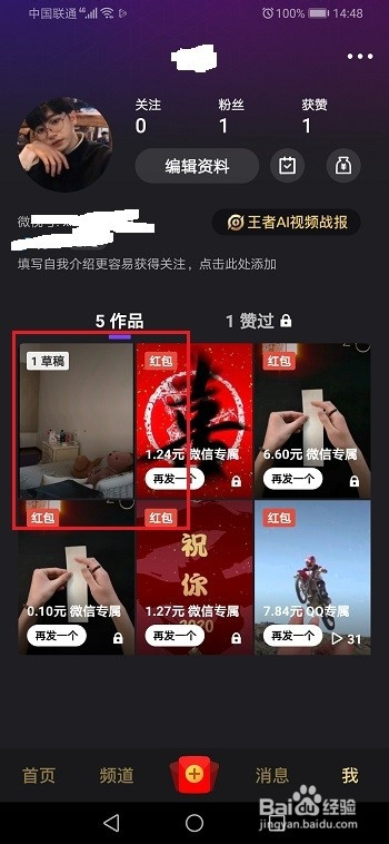 第四步点击草稿箱进去,可以看到保留的视频,如下图所示: