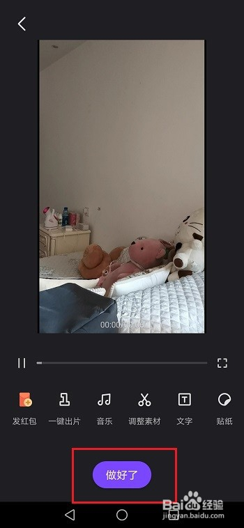 第一步手机上打开微视,进去视频拍摄界面之后,点击选好了,如下图所示: