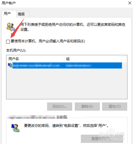 4.然后点击要利用本计较机,用户必需输入用户名和密码前面的勾选;