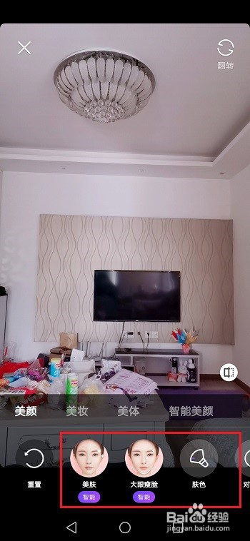 第五步点击美颜,可以进行美肤,大眼瘦脸等,按照需要调整设置