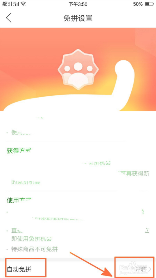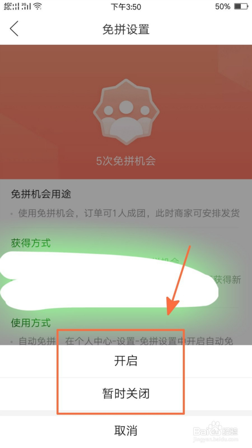 这时即可以看到免拼设置页面及相关的介绍和设置开启/封闭的进口,点击主动免拼;