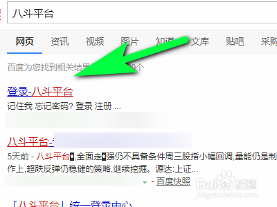 首先在百度搜刮引擎中输入八斗平台。