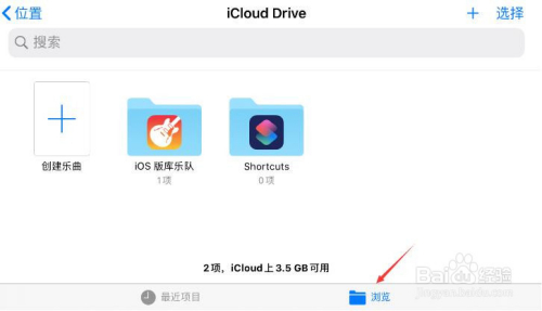 点击手机上的库乐队图标,打开库乐队后,点击”浏览“打开库乐队创作的乐曲清单。