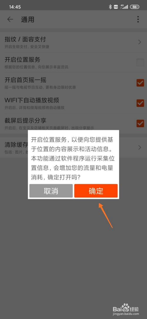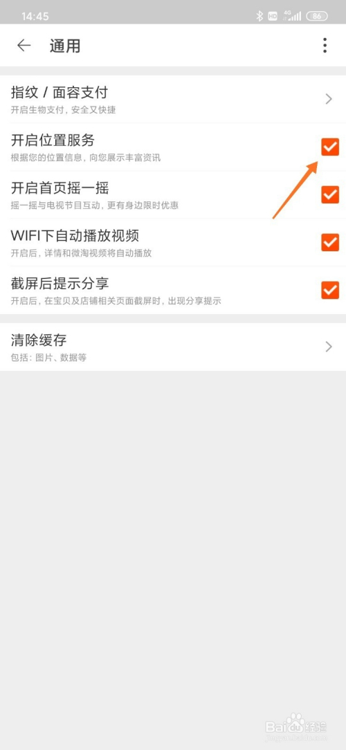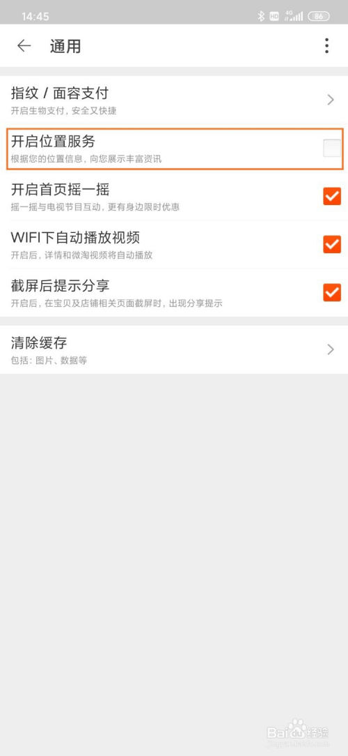 5、找到【开启位置办事】并点击右边的方框