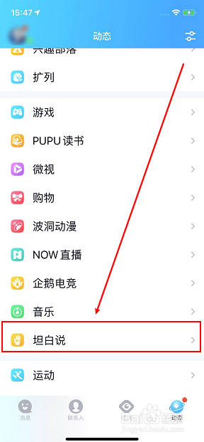 打开动态页面后继续点击【率直说】