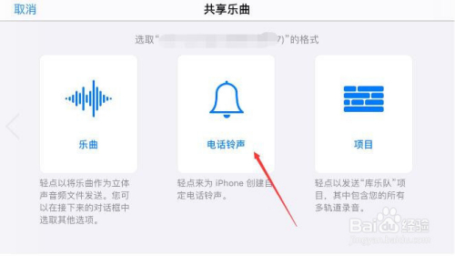 3. 在库乐队选定铃声,将其分享到手机铃声;