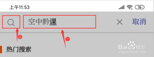 操作第12步后,在搜索框中输入“空中黔课”,之后点击前面的搜刮图标。见下图