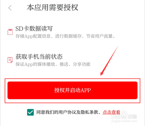 在“本应用需要授权”页面上,点击“授权并启动APP”。见下图