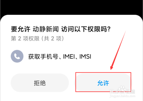 在获取手机号、IMEI、IMSI页面,点击“许可”。见下图