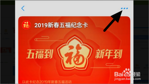 进入新春五福纪念卡后,点击页面右上角的【更多】按钮