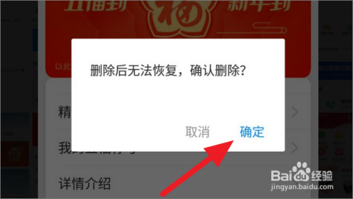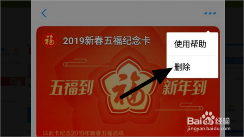 然后按钮下方会呈现删除按钮,点击【删除】按钮即可将新春五福纪念卡删除