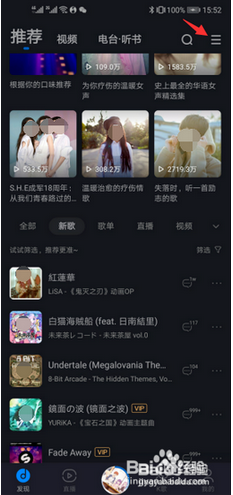 先在酷狗音乐软件界面里,点击顶端的“三”图标。