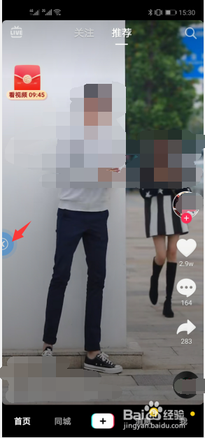 接下来,打开抖音软件,我们看到抖音软件左侧多了个酷狗音乐识曲的悬浮球。