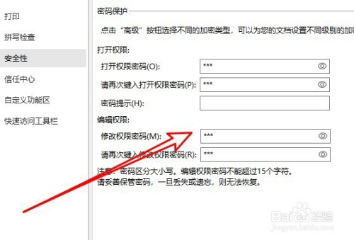 在右侧窗口中找到打开权限的设置密码,并把该密码全数断根就可以了。