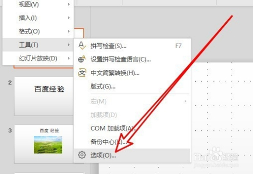 4、接下来在弹出的东西下拉菜单中点击选项的菜单项。
