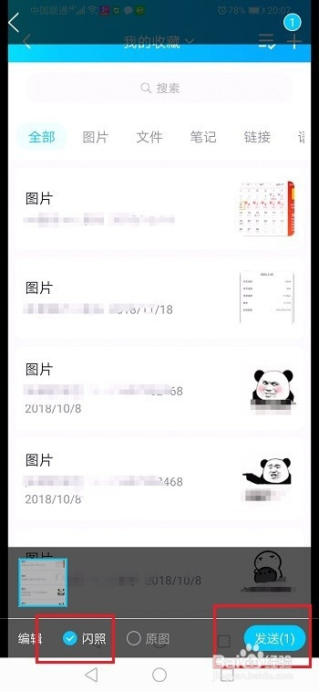 第三步进去图片界面,勾选闪图,点击发送,如下图所示: