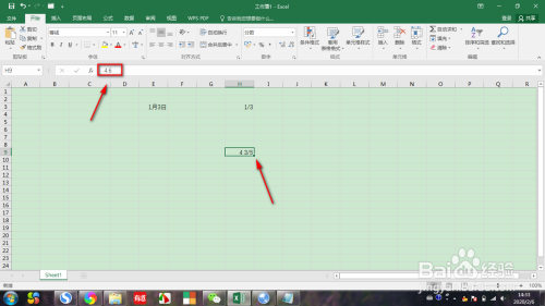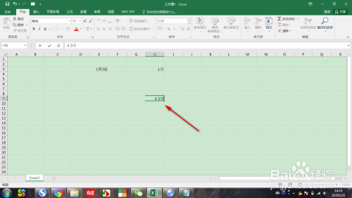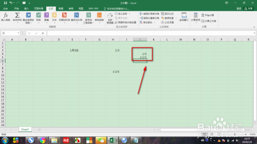 第一步,我们打开EXCEL的工作簿中,选中某一个单位格,然后在单位格中输入整数,然后点击空格,再输入分数,如图所示: