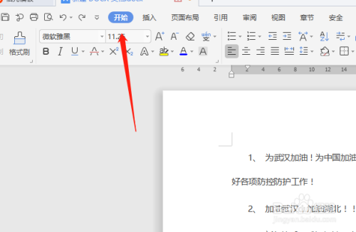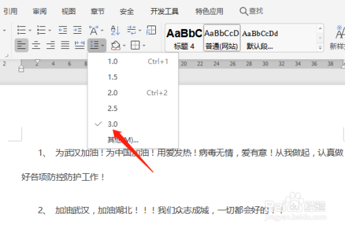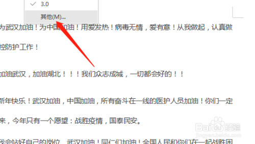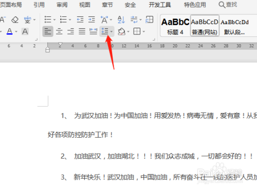 首先打开一个需要设置行距的文档,我们以武汉加油为例,如图。