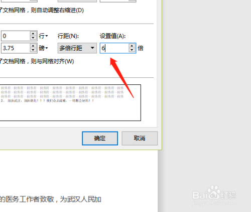 然后选择6倍行距来作为例子,点击确定如图。
