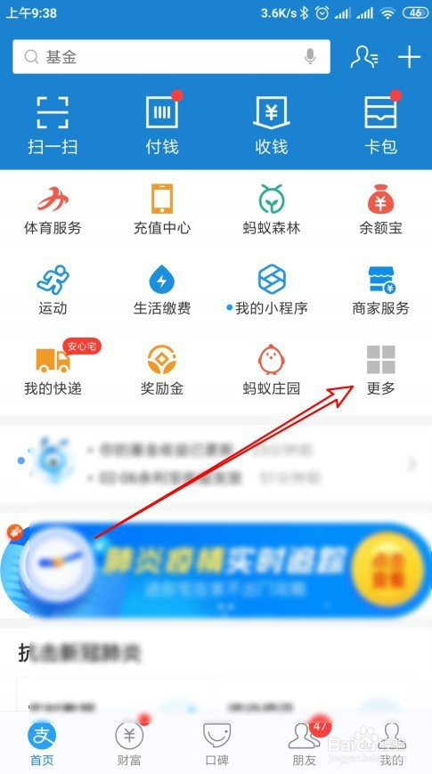 1、在手机上打开支付宝,点击更多的快捷链接。