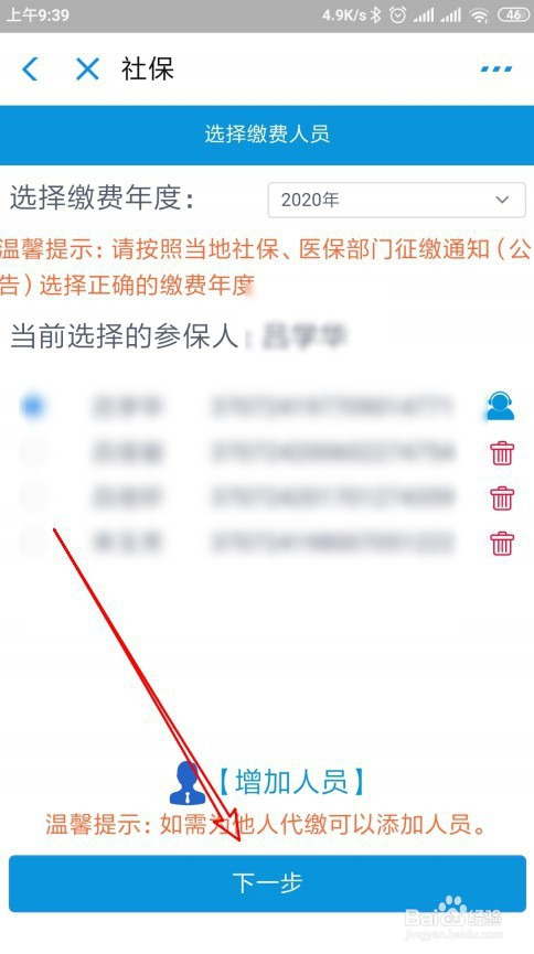 接下来就会打开社保的页面,点击底部的下一步按钮。