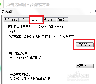 在弹出的系统属性对话框,切换至高级页签点击设置按钮进入。