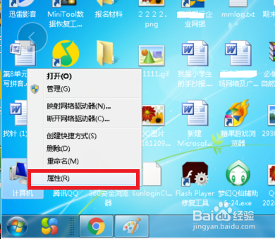 在win7操作系统桌面上,鼠标右键计较机图标选择属性选项进入。