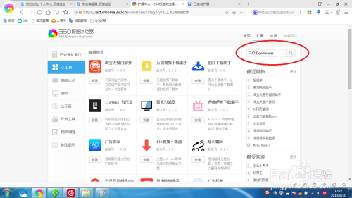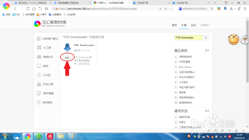 在打开的页面右侧搜刮【FVD Downloader】,并安装。