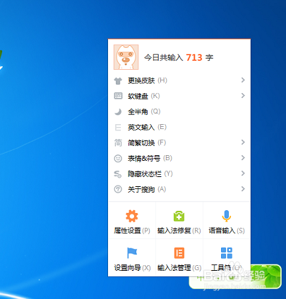 2.接着将鼠标移到搜狗输入法状况栏上,右击,打开其设置菜单。