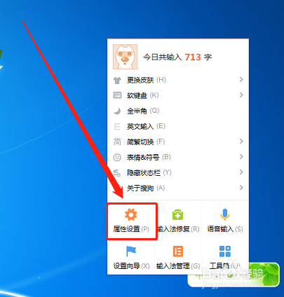 接着将鼠标移到搜狗输入法状况栏上,右击,打开其设置菜单。