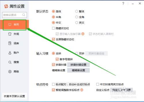 在打开的属性设置窗口,点击左侧上方的“常用”选项。
