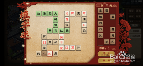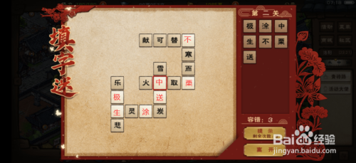 赐福阶段的填字攻略如下图所示,该阶段一共有三关。