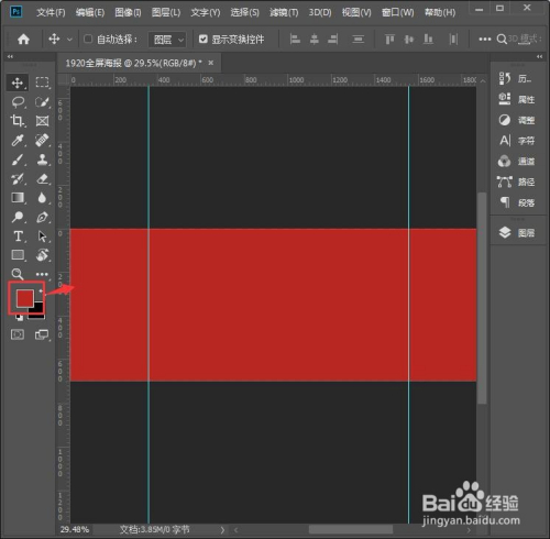 我们把前景设置为红色【#b92722】,然后按下【ALT+DELETE】给白色画布填充红色,如图所示。