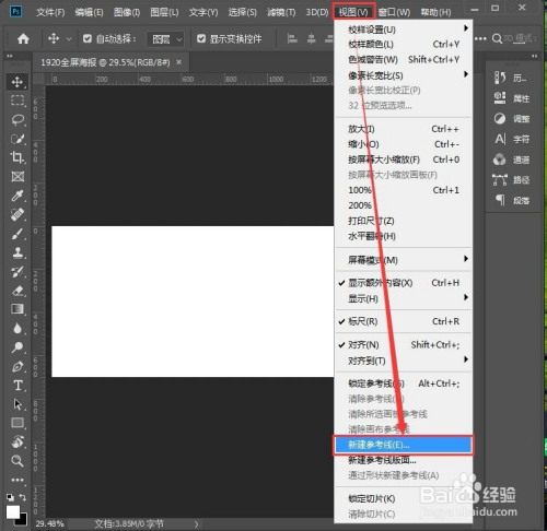 白色画布新建好了之后,我们在【视图】里找到【新建参考线】,如图所示。