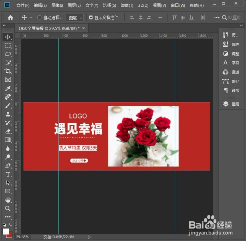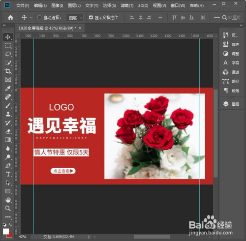 最后,我们来看一下全屏海报建造好的结果。朱颜色的布景适合各类喜庆的节日,如图所示。