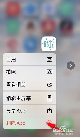 4、或者长按桌面的上b612,点击【删除App】。