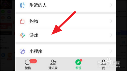 进入发现页面后,下拉该页面,直到呈现【游戏】进口,并点击进入