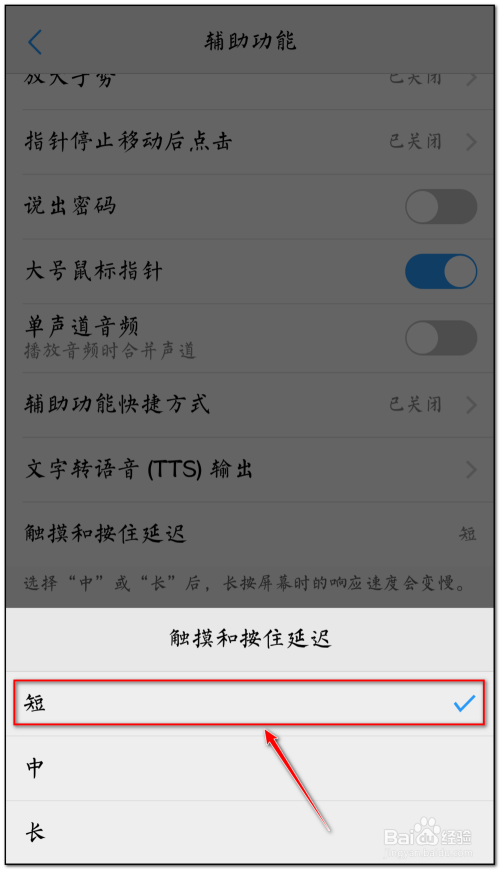 点击“触摸和按住延迟”