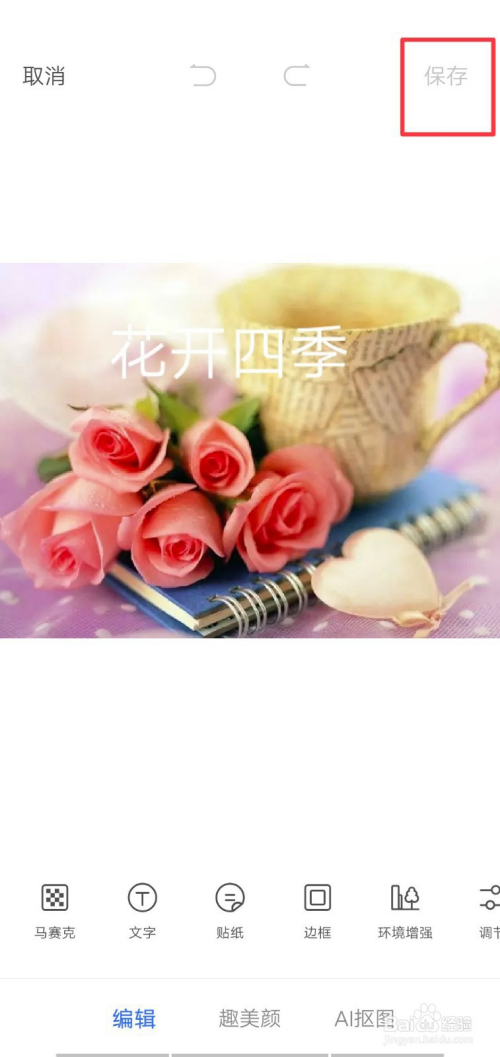 文字编纂已经完当作,我们点击图片右上角的”保留“按钮,图片保留当作功。