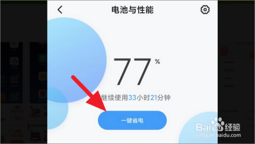 进入电池与机能页面后,点击页面中心的【一键省电】按钮,即可起头省电模式