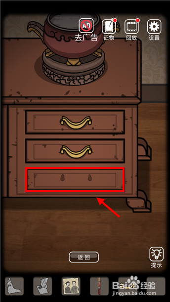 3.切换场景来到电视机柜那边,点击喷鼻炉下方的三个抽屉,睁开特写。