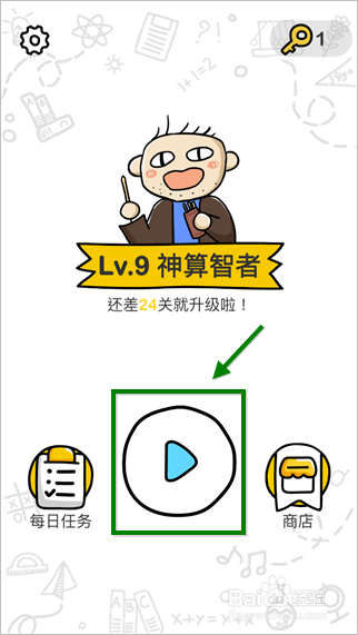 小编以ios版脑洞巨匠举例,首先我们打开游戏然后点击“起头”小箭头。